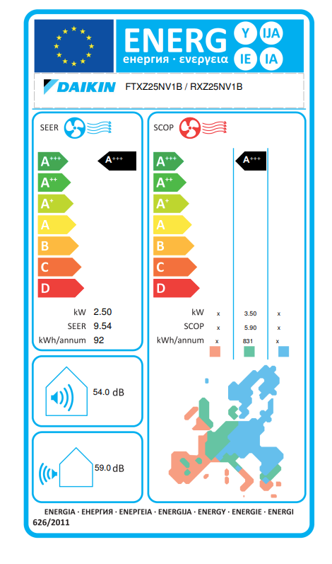 Energy label (Refrigeración / Calefacción) - Average climate: |
